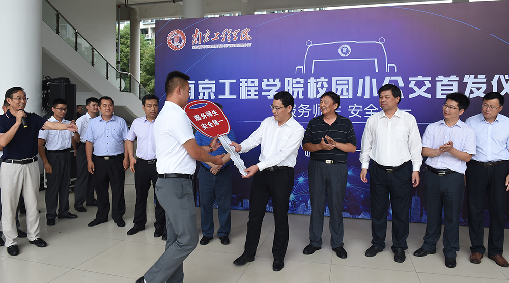 6月19日下午,校园小公交首发仪式在至馨苑·综合服务楼广场举行,江苏省高等凯发后勤协会副会长、秘书长黄在宇,我校朱晓春副院长、张仰飞副院长,相关部门负责人以及小公交运营团队代表、师生代表参加了首发仪式。
