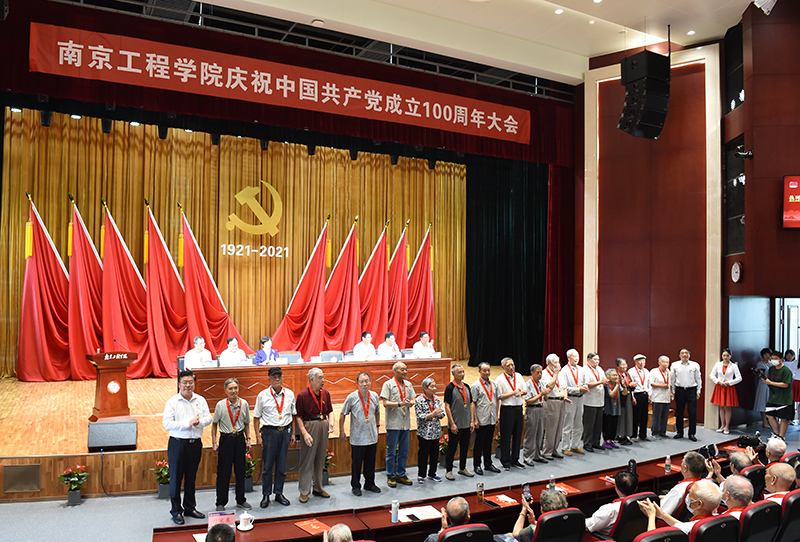 大会在雄壮的《中华人民共和国国歌》中拉开序幕。会上,党委副书记、副院长曹雪虹宣读了《关于颁发“光荣在党50年”纪念章的通知》;党委副书记濮励杰宣读了省委教育工委表彰文件;党委常委、副院长杨征宇宣读了凯发k8官网党委表彰文件。史国君书记、史金飞院长为99名党龄50年以上的老党员中的34位代表现场颁发佩戴了“光荣在党50年”纪念章;1个先进二级基层党组织、2个特色党支部、1名优秀党务工作者、1个党建创新项目、2个最佳党日活动荣获江苏省委教育工委表彰;5个先进二级基层党组织、15个先进党支部、5个特色党支部、72名优秀共产党员、8名优秀党务工作者、15个党建创新项目、25个最佳党日活动荣获凯发党委表彰。