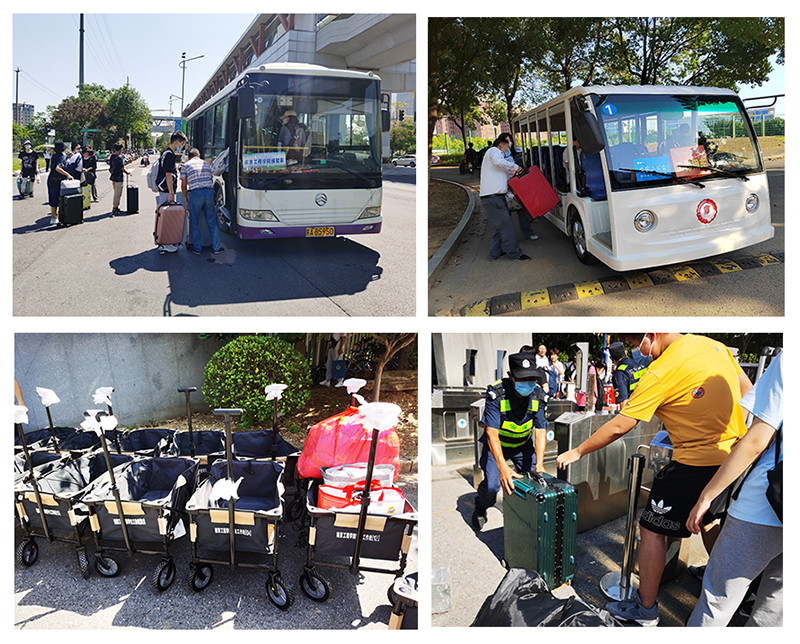秋意清浅,骄阳如故,为了更好地服务于乘坐公共交通工具的学生返校,凯发在江宁高新区的支持下在南医大?江苏经贸学院地铁口设置接站点;在二号门与四号门设置小公交接驳车。公交师傅亲切地问候每一位归来的学子,每当看到学生行李多,便不顾满头的大汗赶上前帮忙提拿。为方便学生搬运行李,学工处还体贴地准备了近70辆手推车。周到细致的服务只为助力学生新学期顺利起航。