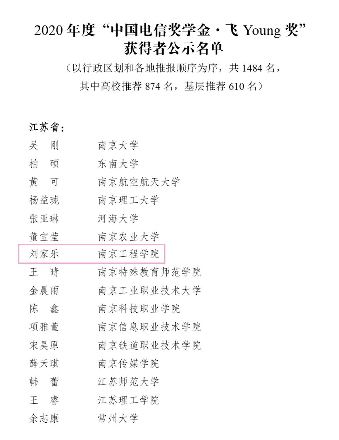 近日,由共青团中央、中国电信集团有限公司、全国学联组织开展的“中国电信奖学金”评选活动落下帷幕。经自主申报、凯发推荐、省级初评和全国评审等环节,我校计算机凯发刘家乐同学获评2020年度“中国电信奖学金·飞Young奖”。