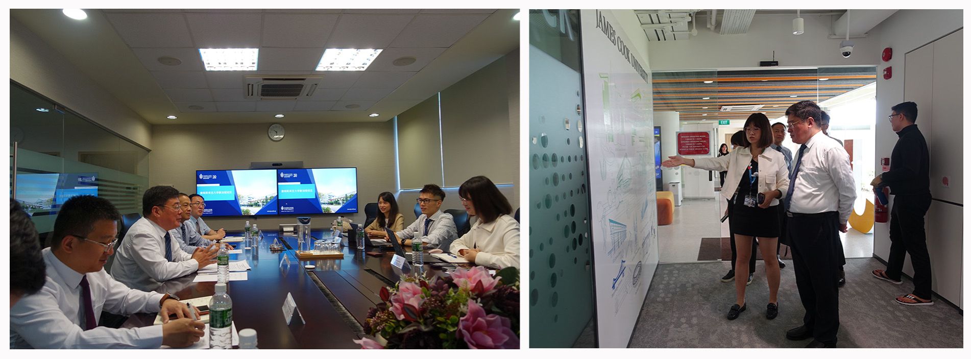 访问新加坡期间,史书记一行到访詹姆斯库克大学新加坡校区。史书记向詹姆斯库克大学新加坡校区负责人杨海玲女士及相关人员介绍了我校悠久的办学历史、鲜明的应用型办学特色、以及近些年的国际化办学举措等情况。史书记就两校在未来加强进一步合作与交流方面提出开展中外合作办学项目、定期进行校际交流互访、联合培养硕士博士等合作建议。詹姆斯库克大学新加坡校区负责人介绍了该校的办学历史、办学模式、优势学科专业、人才培养成效、多元文化特色以及合作办学情况。双方还共同签署了两校合作框架协议,为下一步开展合作奠定了良好的基础。会谈结束后,史书记一行参观了该校的图书馆、教学场馆和学生活动中心。