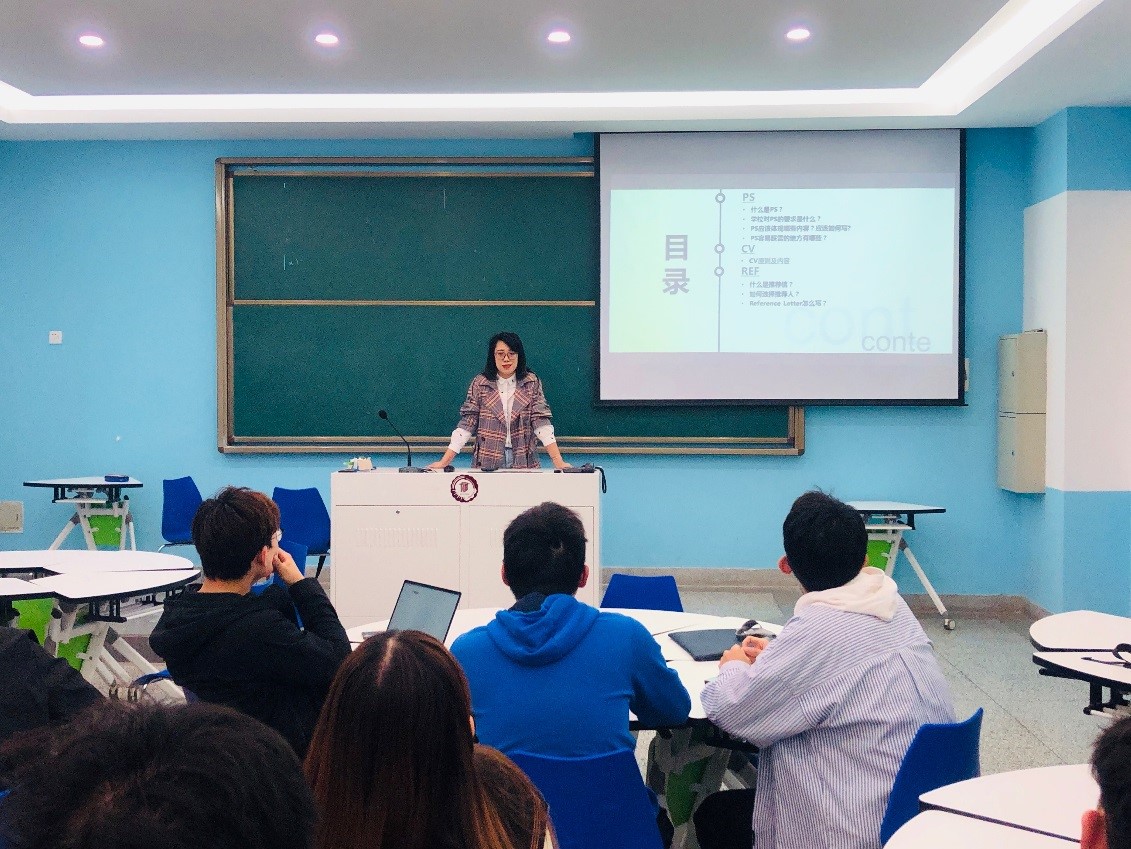 为进一步细化学生学业支撑体系,助力国教学子申请海外心仪高校,4月19日,国际教育学院邀请专家在经管楼C102详细讲解留学文书撰写技巧,为学生的跨国之旅保驾护航。